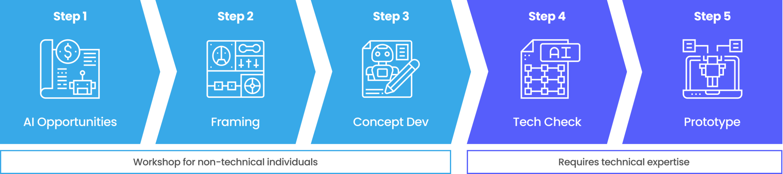 Utilize our repeatable methods to transform innovative AI concepts into practical and impactful solutions.
